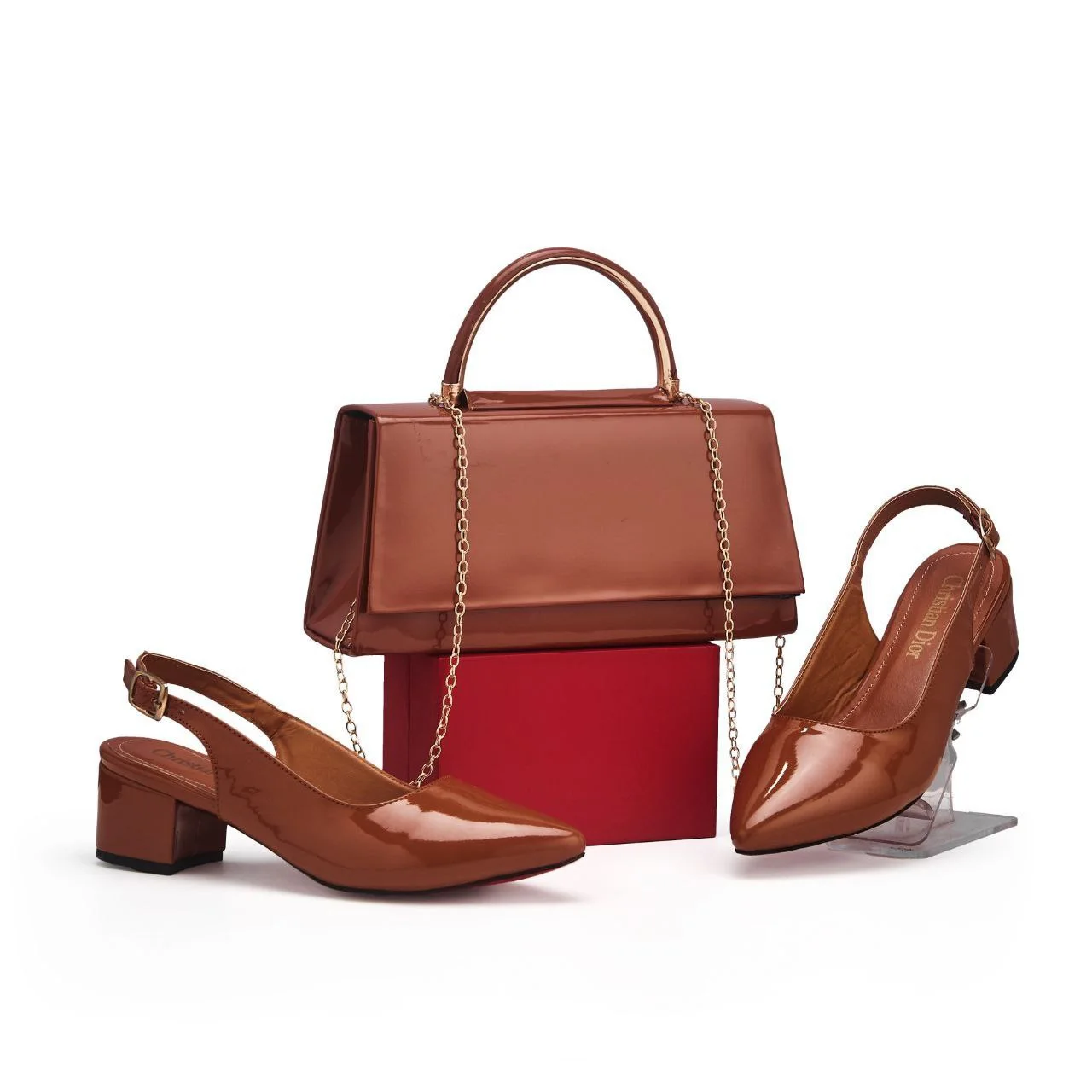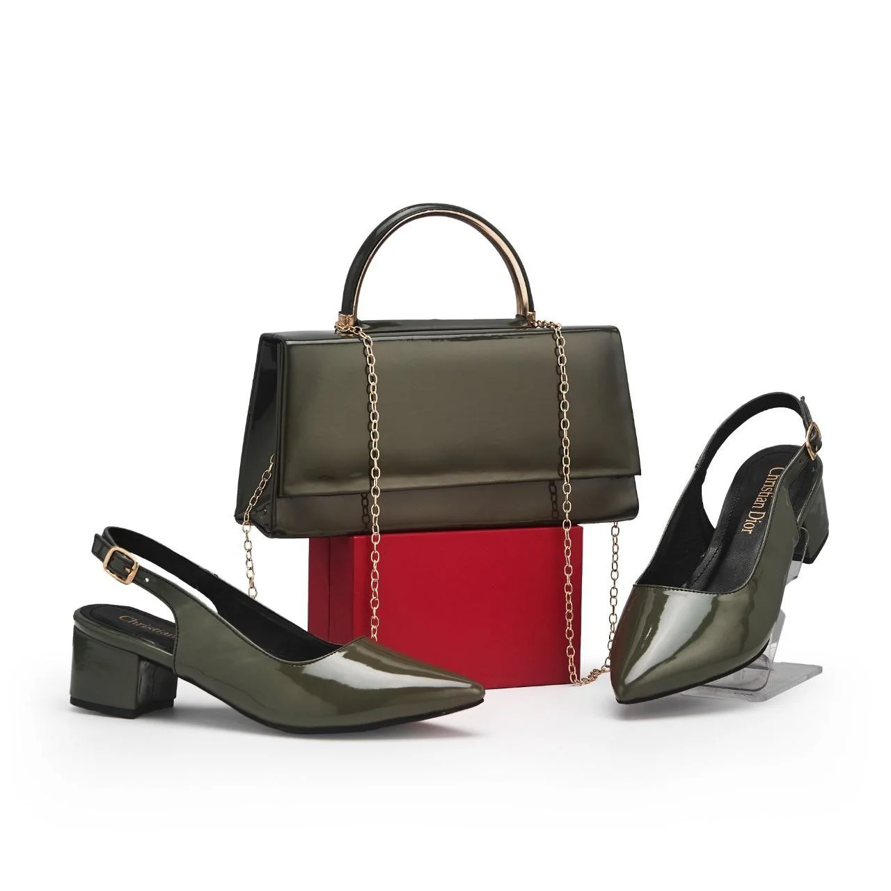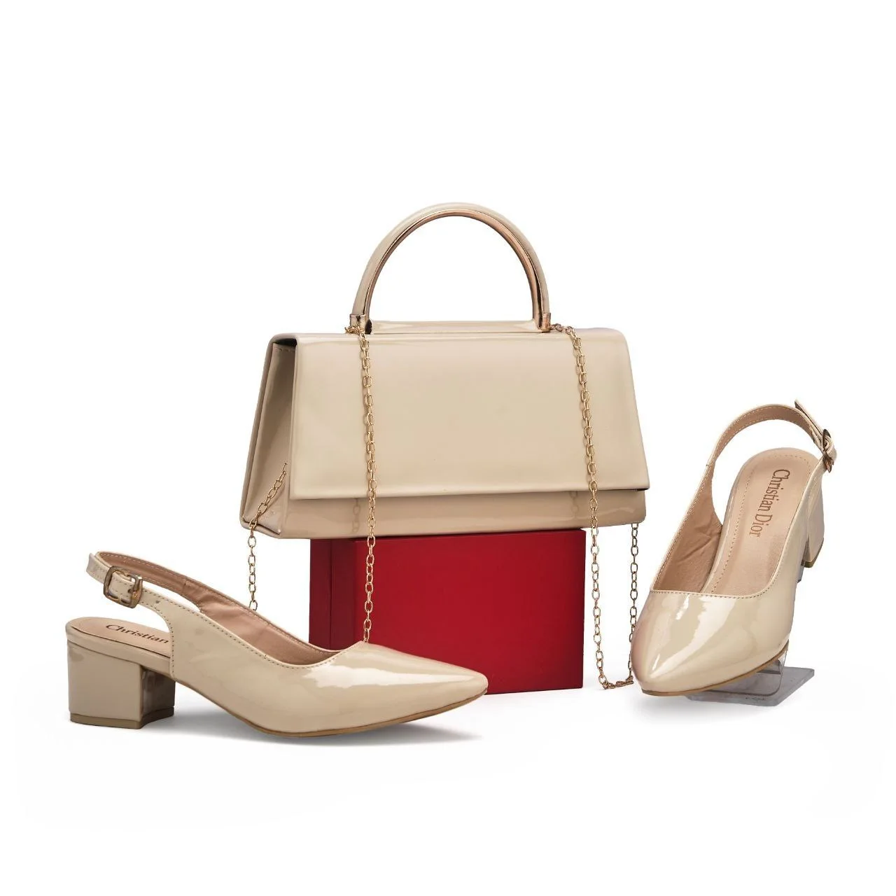 👑أناقة متكاملة بحقيبة وحذاء بكعب مريح👑