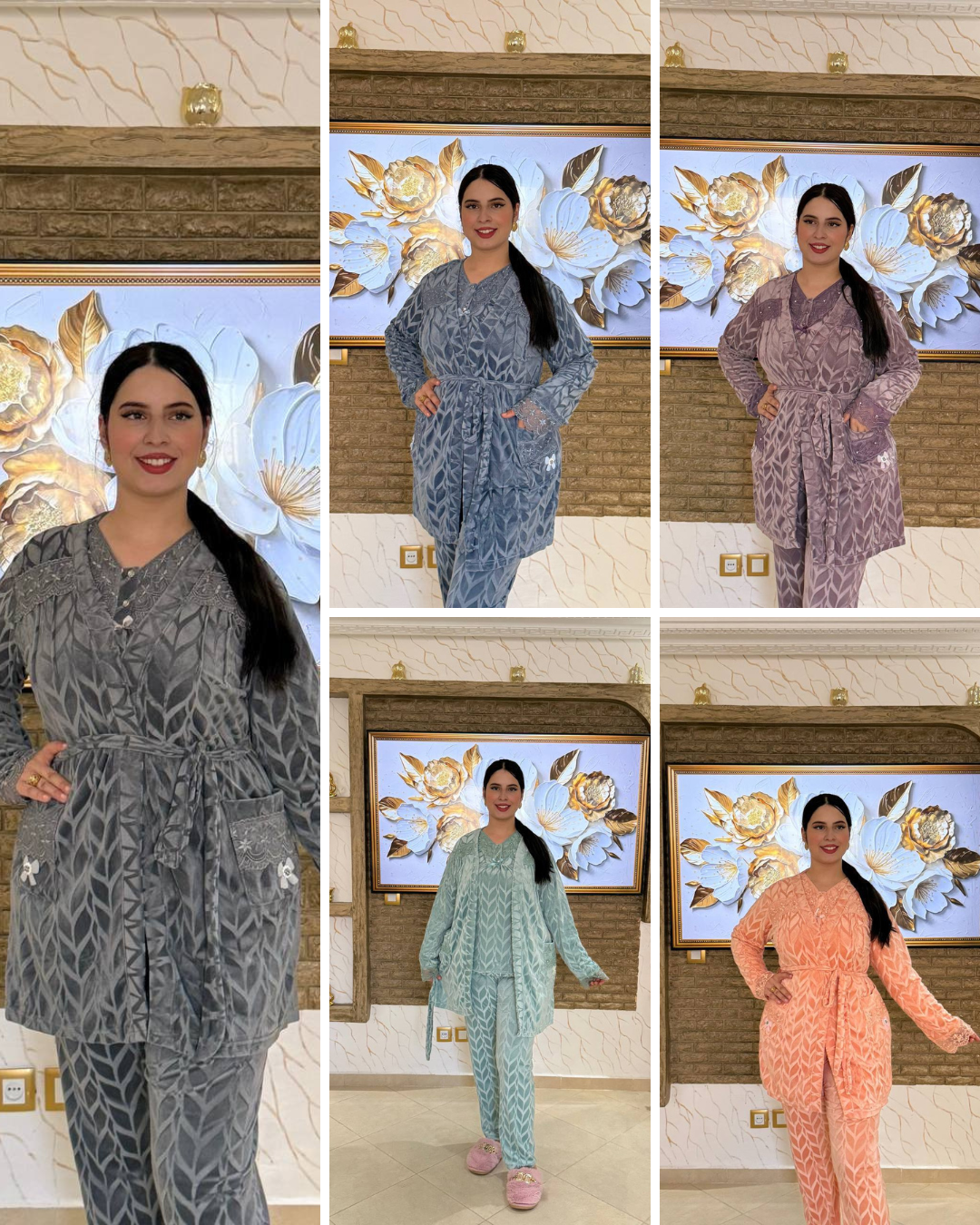 طقم بيجامة الأنيقة المكونة من 3 قطع هي الاختيار اللي كيجمع بين الراحة والرقي 🌙